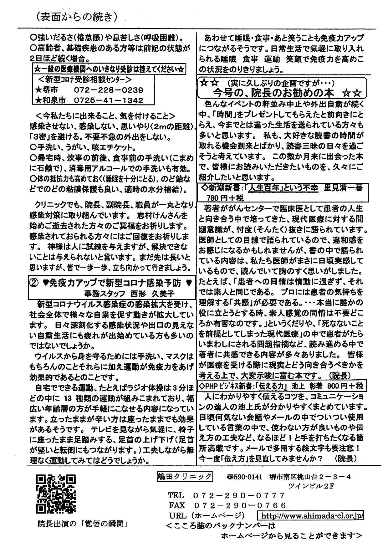 令和2年5月7日 こころ誌120号 | 内科は大阪府、堺市の医療法人祐希会 嶋田クリニック | 院内報「こころ」