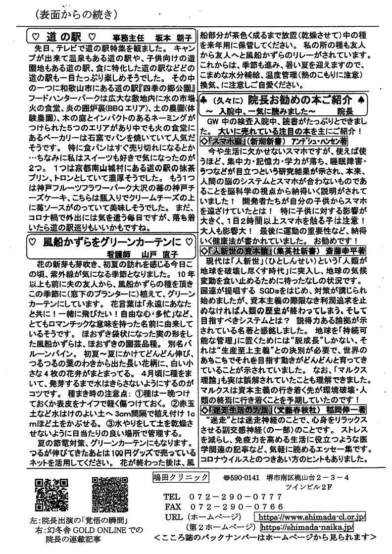 令和3年5月6日 こころ誌126号 | 内科は大阪府、堺市の医療法人祐希会 嶋田クリニック | 院内報「こころ」