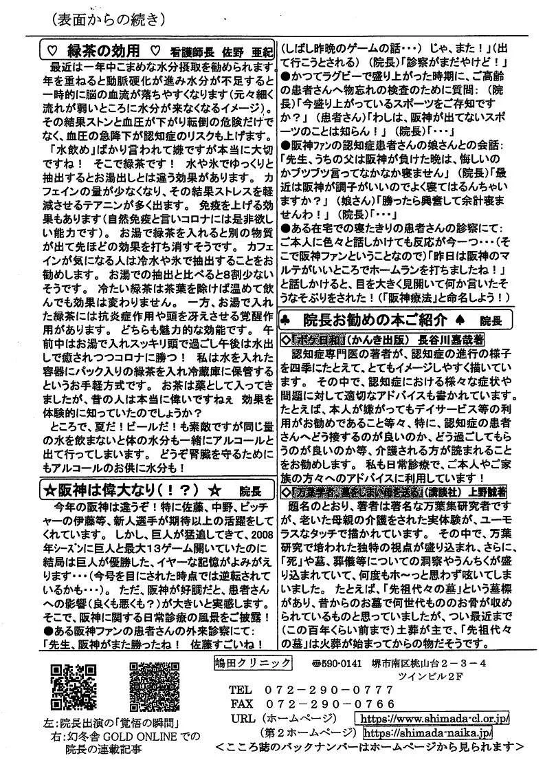 令和3年7月5日 こころ誌127号 | 内科は大阪府、堺市の医療法人祐希会 嶋田クリニック | 院内報「こころ」