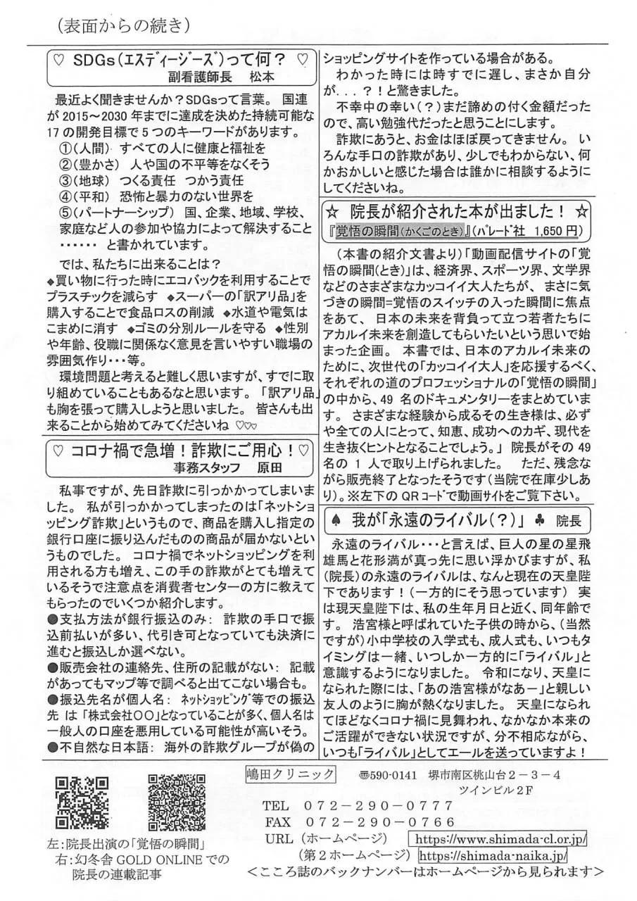 令和4年9月5日 こころ誌134号 | 内科は大阪府、堺市の医療法人祐希会 嶋田クリニック | 院内報「こころ」
