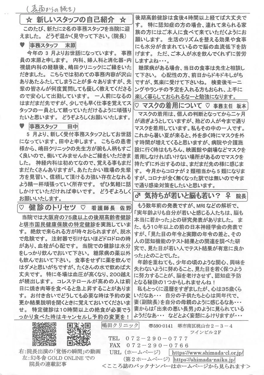 令和5年5月8日 こころ誌138号 | 内科は大阪府、堺市の医療法人祐希会 嶋田クリニック | 院内報「こころ」